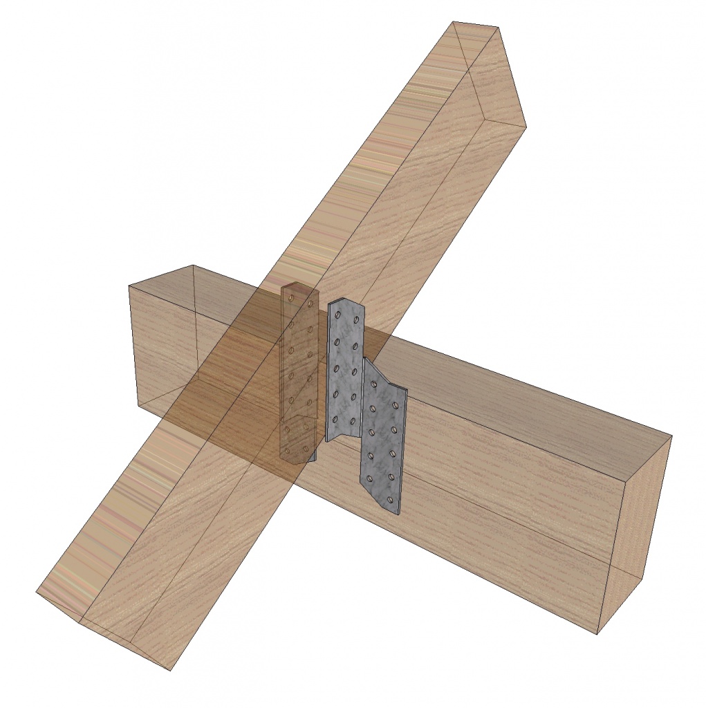 Для начала рассмотрим опоры для неподвижных соединений. Первый представитель этого вида – держатель балки DBL/R (левый и правый, соответственно). Изделие несложное и представляет собой аналог удлиненного уголка. Применяется для закрепления стропил на брусе мауэрлата.